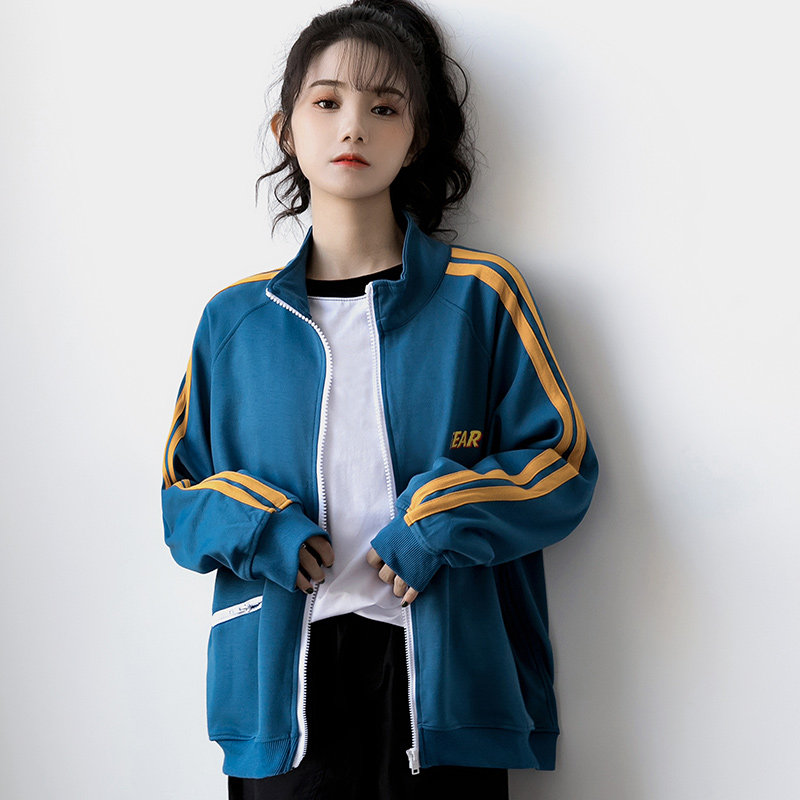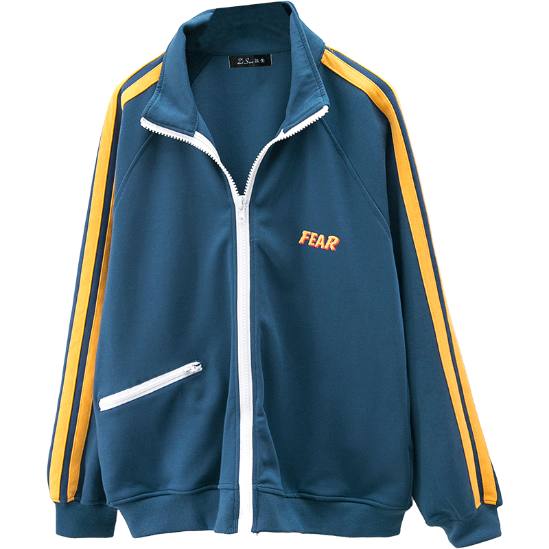 レトロなスポーツテイストが魅力のトラックジャケットです。 袖に配されたツートーンのラインがアクセントになり、スポーティな印象を演出します。 胸元のワンポイント刺繍がさりげないおしゃれ感をプラス。 ゆったりとしたシルエットのスウェット素材で着心地も抜群です。 フロントジップ仕様で着脱も簡単、デイリーコーデに取り入れやすい一枚です。 カジュアルスタイルからストリートファッションまで幅広く活躍します。
