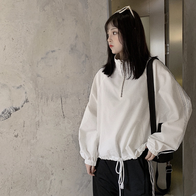 ハーフジップ仕様で着脱も簡単、裾のドローコードで自由にシルエット調整が可能です。