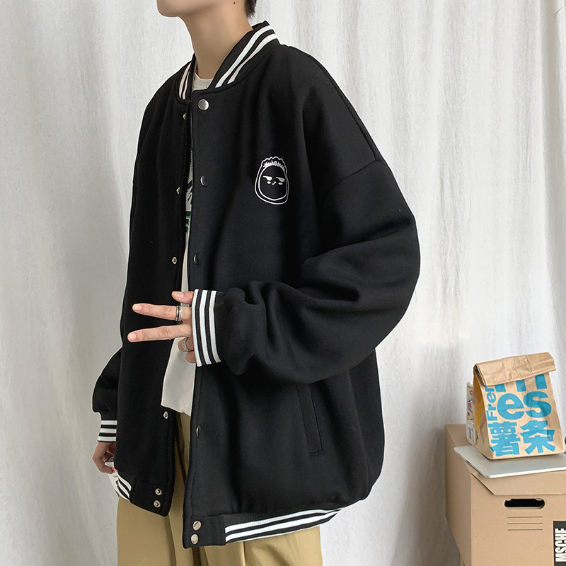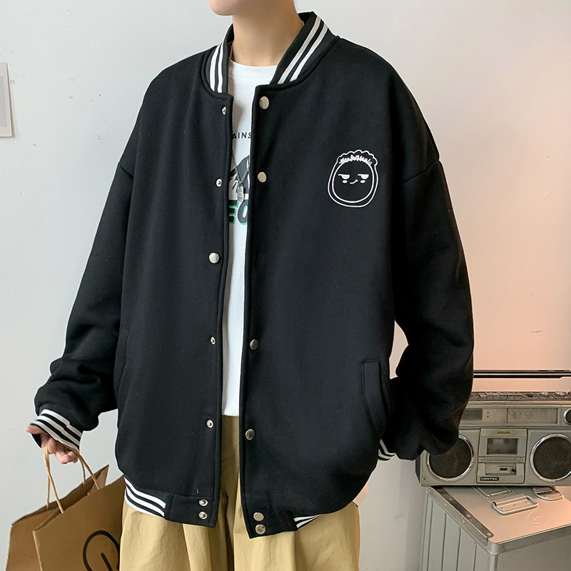 胸元のユニークなキャラクター刺繍がアクセントになったトラックジャケットです。