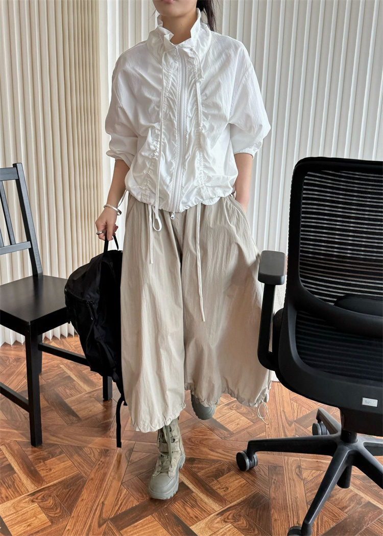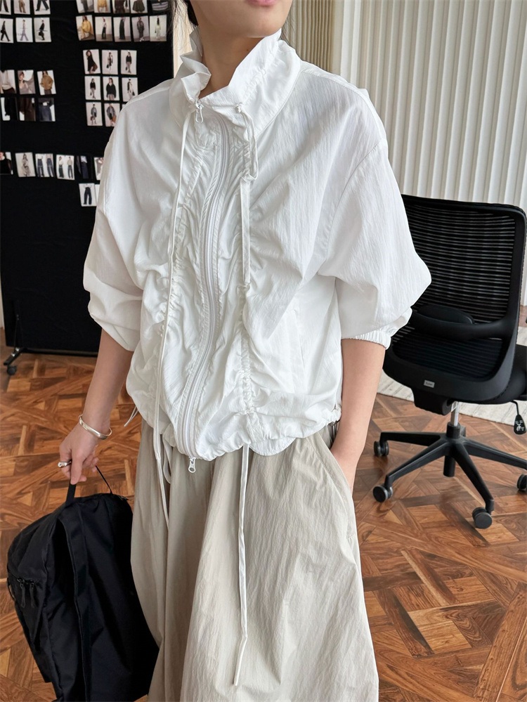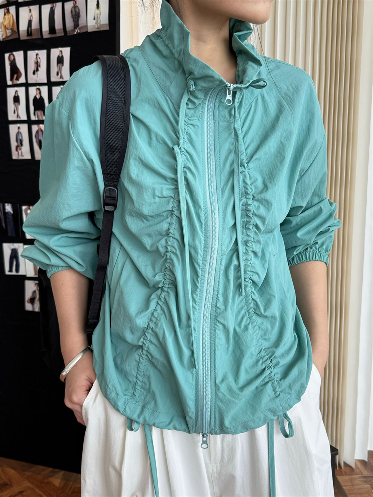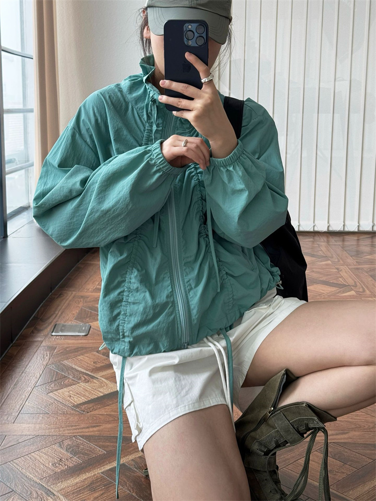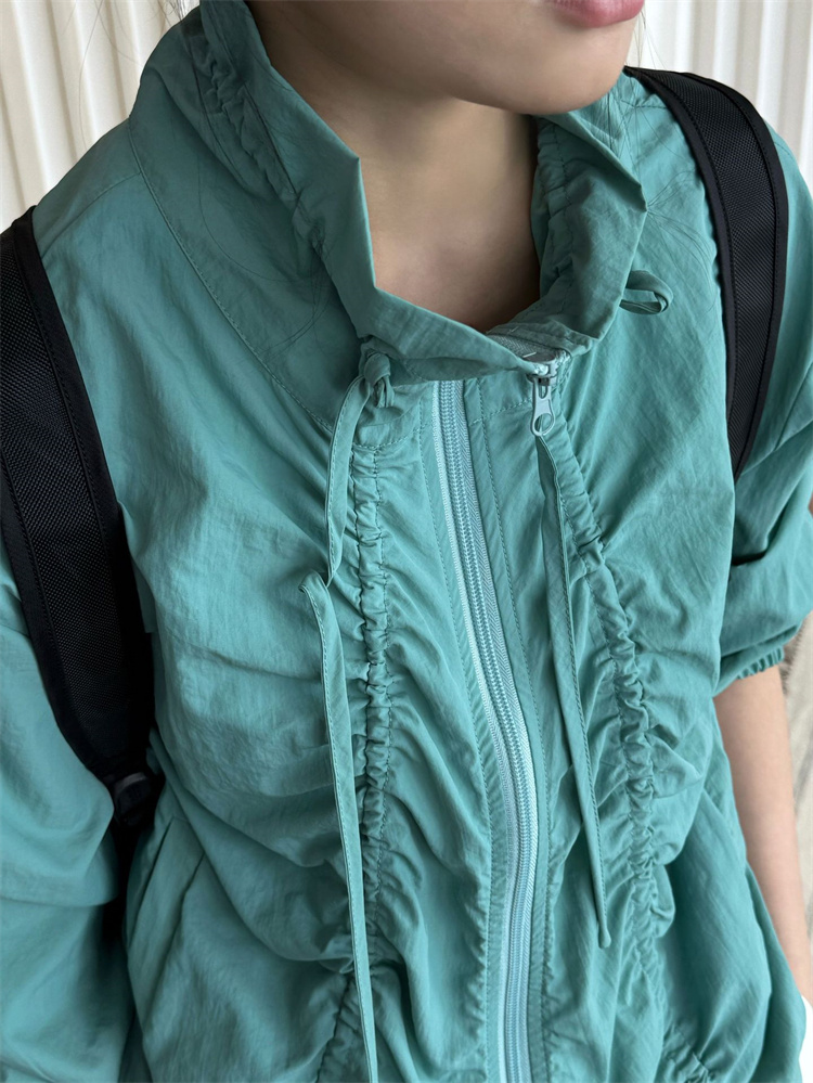 春夏季にぴったりのUVカットジャケット! ナイロン素材で軽量&通気性抜群のリラックスデザイン。 サイドのドローストリングでシルエットを自由に調整可能なほか、 シボ加工が立体感のあるおしゃれな雰囲気を演出。 紫外線対策と防水機能付きで、 アウトドアや日常使いに最適なマルチアイテムです。